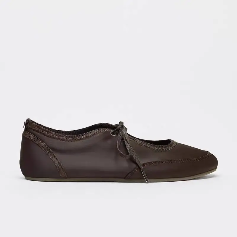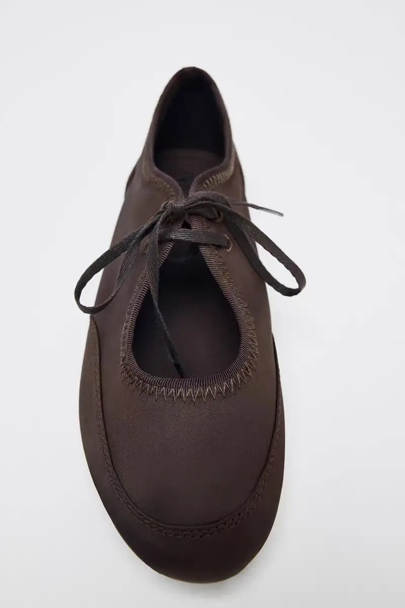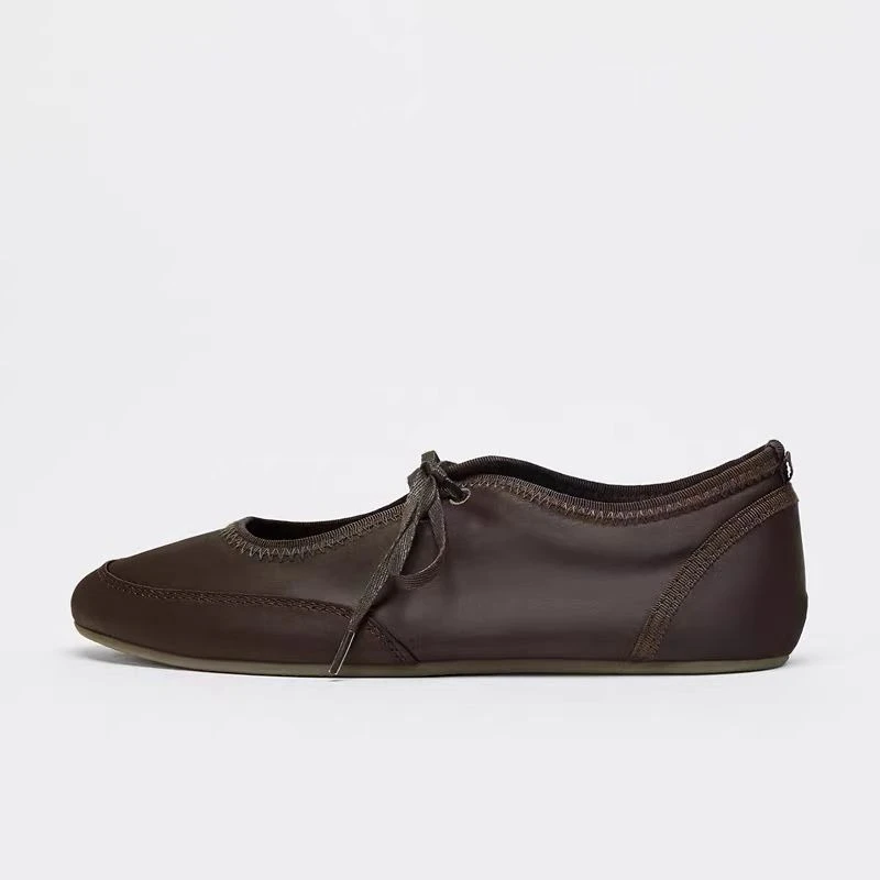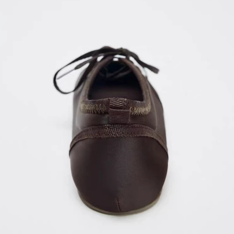 Model Number: Brown Lace-Up Ballet Flats Woman